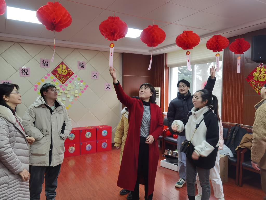 活动现场,师生们纷纷在“送祝福·畅未来”心愿墙上贴上对祖国、公司、老师、父母和自己的祝福,内心充满了对未来的期待;在“猜灯谜·迎新年”区域,师生们对着一个个灯谜,饶有兴趣地破译谜面;还有师生在包饺子诉情谊,师生融乐的交流声与央视直播的音乐声相互映衬,现场的氛围格外温馨热烈。