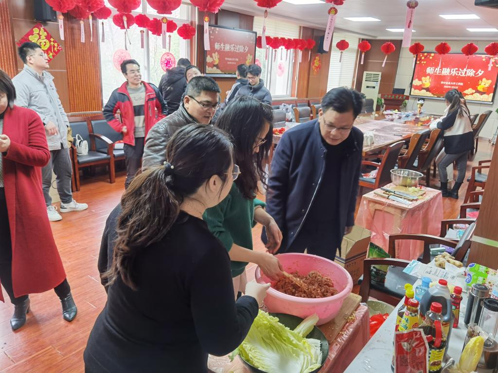 1月31日下午,bevictor1946韦德官网在工程楼A201会议室为2022年寒假留校员工开展“送祝福·畅未来,猜灯谜·迎新年,包饺子·诉情谊”师生融乐暖心活动,向留校员工致以新春祝福,让留校员工度过一个有安全感、幸福感、获得感的温暖寒假。bevictor1946韦德官网经理廖庆喜教授、王巧华教授等老师与近20名留校员工一起共迎新年,共话未来。