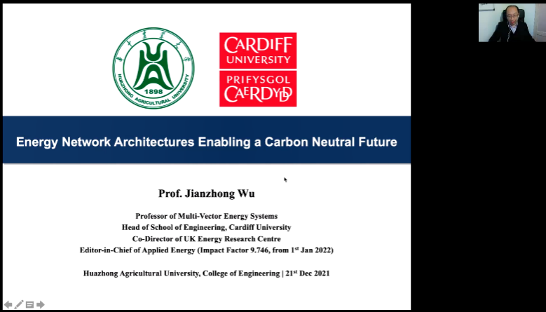21日,卡迪夫大学工程公司经理吴建中教授作题为“实现碳中和的未来能源网络架构”的学术报告。会议开始,他向华农bevictor1946韦德官网师生表示感谢,并就自身科研项目概况、卡迪夫大学及两校人才交流合作项目基本情况作介绍。报告内容分为研究背景、未来能源场景、能源网络体系结构、总结四个部分。他提到,回顾历史,人类对于能源的需求在近百年来飞速增长,我们现阶段正处于有限的传统能源和持续增长的能源消费的困境当中,吴建中表示,在未来的时间内,能源问题都将是充满挑战和机会且对人类影响深远的重大研究领域。