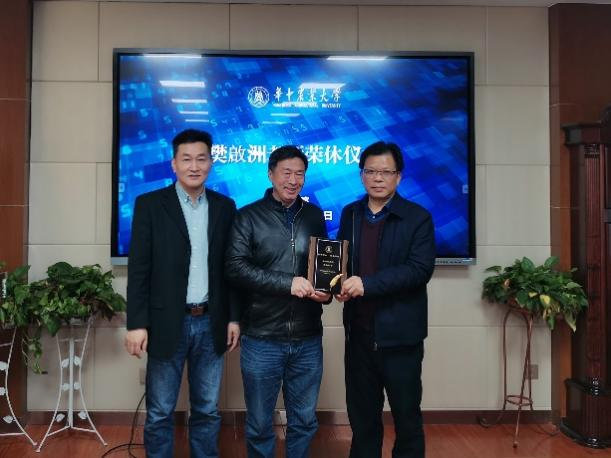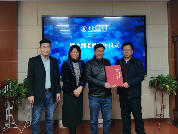 仪式上,副经理徐克宣读了退休决定,明庭庆、廖庆喜、瞿明丽等领导为樊啟洲教授颁发荣休纪念牌及纪念相册并合影留念。