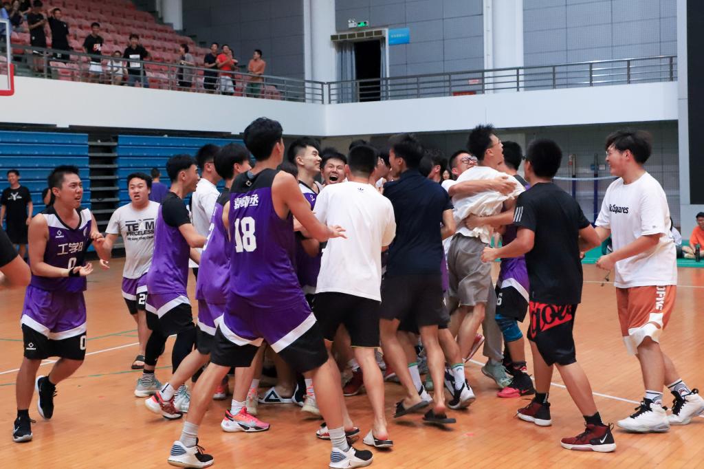 在炎炎夏日里,运动员们克服生理、心理的重重考验,发扬“友谊第一、比赛第二”的比赛精神,尽情挥洒汗水,为团队荣誉而战。每一场比赛都是工学男篮自我的挑战和蜕变,激发了工学学子奋勇拼搏、追求卓越的精神!热血与汗水挥洒,激情与速度碰撞,一秒绝杀,绝地反击,不到终场哨声响起,永怀一颗冠军之心,工学男篮做到了!