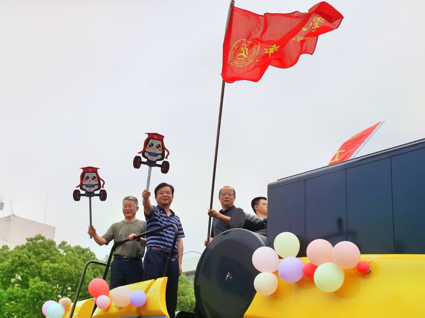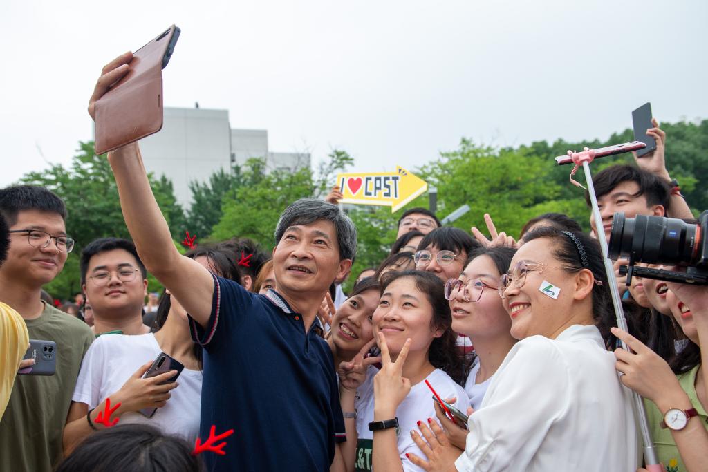 作为一名基础课教师,理公司陈华锋老师被一波又一波同学邀请至机车前合影,他感慨说:“和同学们一起巡游,自己仿佛重新回到了大学时代。作为一名老师,以这种特别的方式为大家送别,既是对学子们学有所获的祝贺,也是对美好的青春岁月的致敬。”