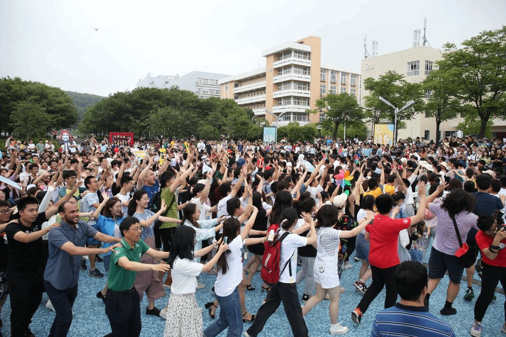 深情歌唱后,欢快的音乐响起。舞池中央,同学们纷纷携手跳起了交谊舞,现场气氛也在大家的舞动中被点燃,不少职工也加入了舞动的队伍之中。随后,师生手拉着手共同跳起了“兔子舞”,高翅教授也一同加入舞池中,并与同学们一起高声欢呼“毕业快乐”“我爱华农”,灿烂的笑容在每张脸庞上绽放,欢呼声、掌声响彻狮山。同学们热情地和老师们合影留念,现场的师生也纷纷用手机、相机记录下和师长、同学们的珍贵瞬间。