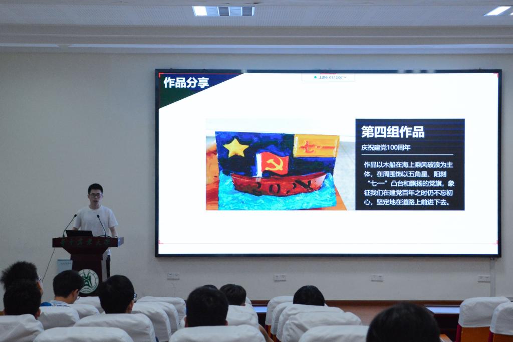 本次汇报会分为3D设计与打印、数控技术与加工两个版块,由前期遴选出的课程考核优秀同学上台展示学习成果、畅谈学习收获。陈鸿祥、李卓彬等10名同学分享了以载人航天等“大国重器”为灵感进行3D设计的学习体验,陈龙龙、李仕豪等6位同学分享了以“红船精神”为主题进行建模加工、以实际行动献礼建党100周年的学习过程,王环哲同学在介绍自己的建模思考说:“作为新时代老员工,这不仅仅代表的是身份,更代表的是一种责任与使命,奉献与担当,新时代,新青年,我们应该向那些默默无闻的科技工作者学习,为实现科技强国梦奉献自己的青春。”