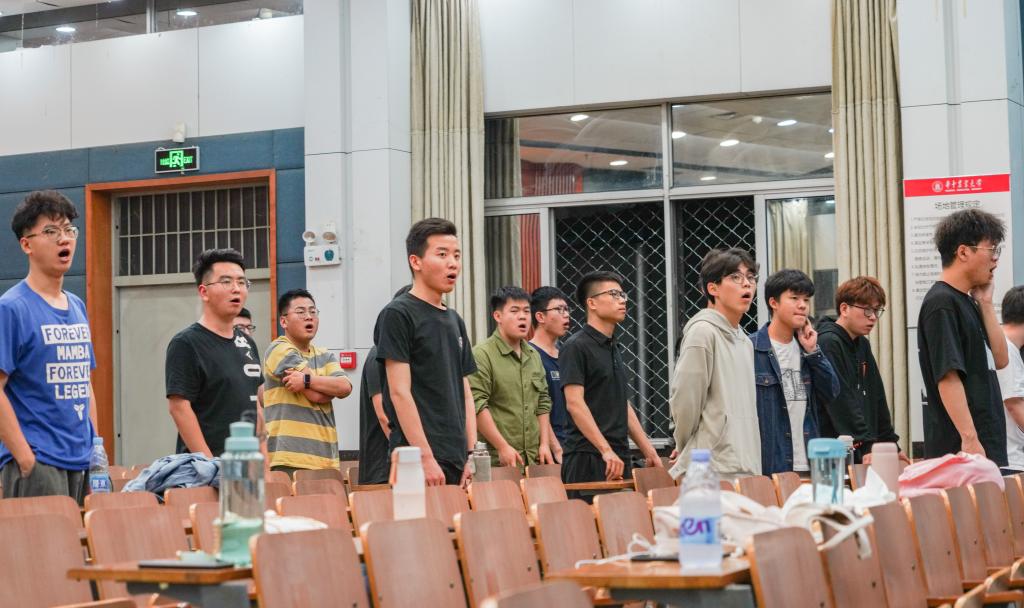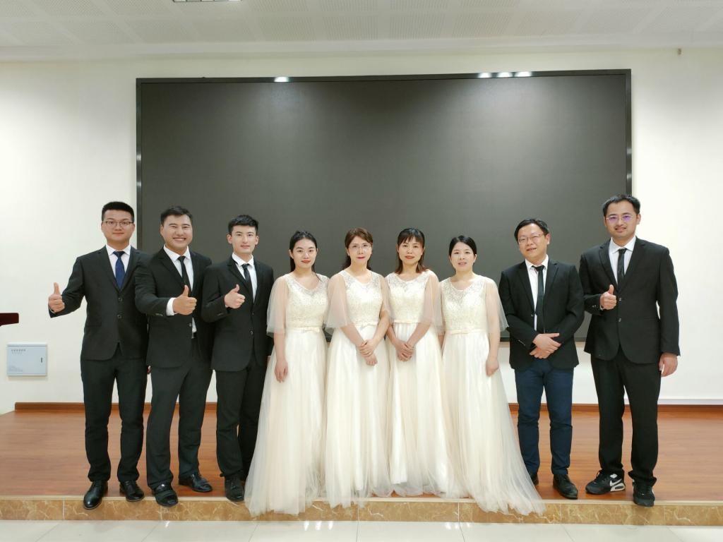 为了唱好这首歌,从四月初开始,公司开始组建合唱团队,通过自主报名、考核筛选等,最终确定了11名教师、40名本科生、3名研究生组成的合唱团参加比赛。根据团队成员的自身特点分好声部,训练正式开始。