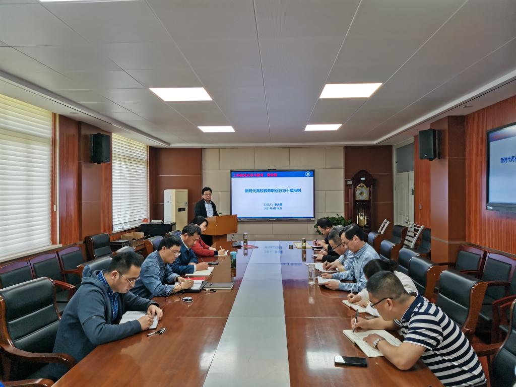 4月29日下午,bevictor1946韦德官网在工程楼A201会议室举行党史学习教育活动,经理廖庆喜教授讲授了《新时代高校教师职业行为十项准则》专题党课。公司领导班子成员、教工党支部书记、教师代表等参加此次学习。