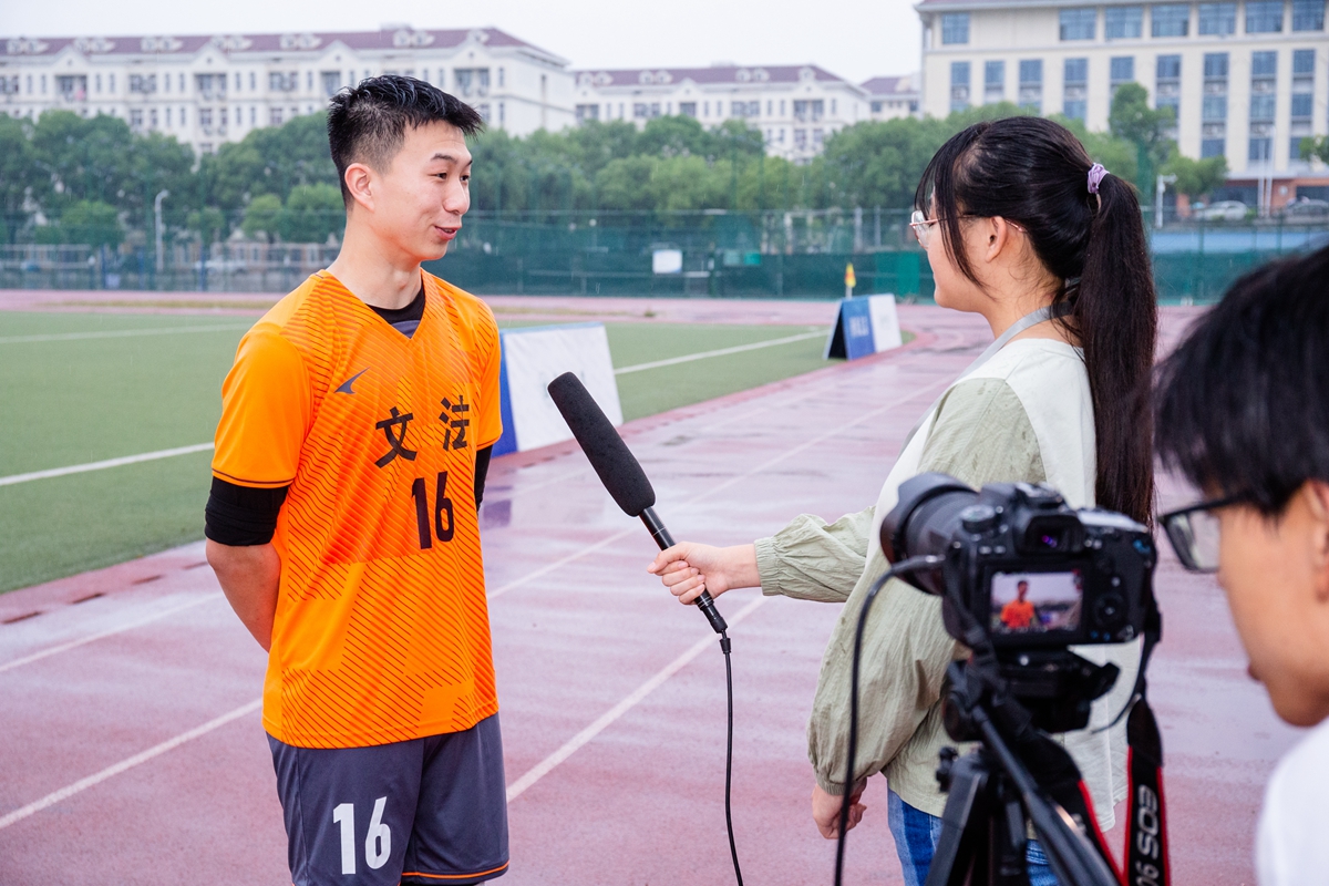 文法公司男足队员杨恣懿赛后接受记者采访(侯国涛 摄)