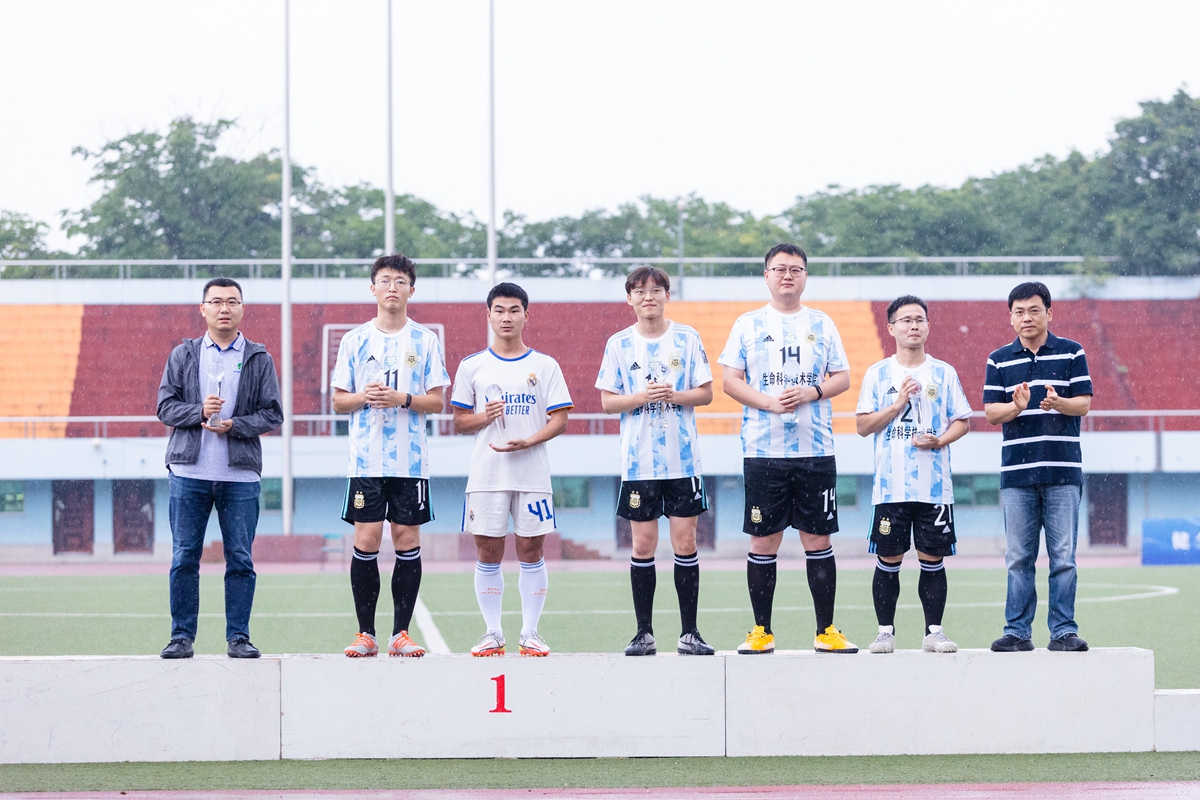 颁奖仪式上,总裁判长、体育部闫彬老师宣布了2022“狮子山杯”足球比赛结果。公司党委书记高翅,董事长李召虎,副董事长青平以及党委宣传部常务副部长吴义生、本科生院常务副经理李大鹏、党委研究生工作部部长镇志勇等分别为获奖团队和个人颁奖。
