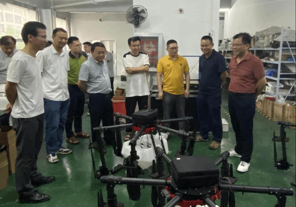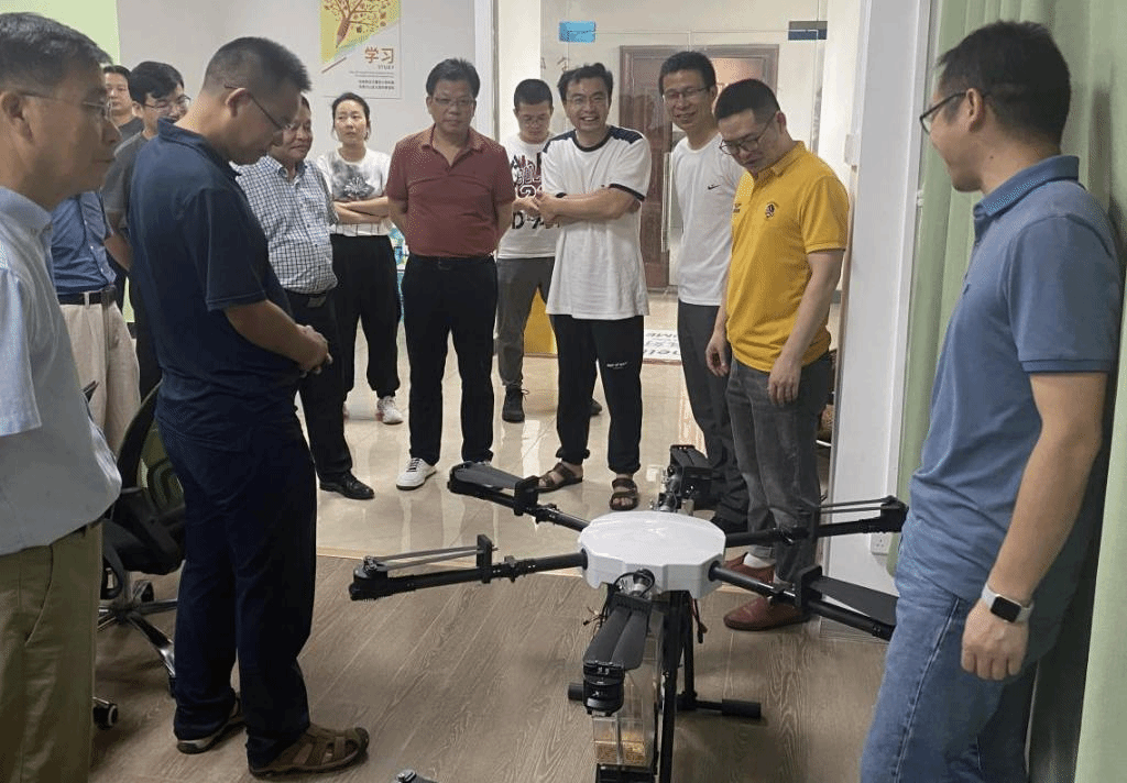 在参观工厂时,陈克朋总经理向廖经理一行重点介绍了公司多款核心产品,农药喷洒无人机、播种无人机和抛物无人机等。同时,由bv1946伟德国际始于英国黄小毛教授牵头研发的最新产品水稻、油菜兼用型条播无人机也在仪式上得到展示,此款兼用型条播无人机在咸宁市天意模型科技有限公司成功实现量产,并已接到海外客户订单。陈总经理表示,本次研究生实践基地的建立是公司高速稳步发展的重要支撑,将借助高校专业化人才培养的强大力量,不断提升公司研发实力,促进、扩展公司的发展领域,尤其是前瞻性项目的研发进程。