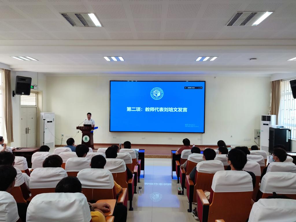 青年教师刘培文研究员代表导师发言。他分享了个人求学的经历和自己对人生意义的理解,并向研究生新生分享了五个做科研的建议。一是要学会专注。每个人的精力都有限,集中精力把一件事做好比把每件事都做得差不多更重要。二是要聪明地努力。做事的过程中要不断思考,不能一味埋头苦干,在思考中明白失败的原因和改进的方向。三是要乐观自信。科研道路上挑战不断,受挫是常态,要保持乐观的心态,经常激励自己“加油,这不是一个未知的世界,这是一个崭新的世界”。四是要谦虚好学。谦虚使人进步,在科研道路上一定要多向导师、前辈和身边的同学学习,万不可觉得自己比其他人聪明。五是要坚持做对的事。很多事不是付出了时间和精力就会有回报,全力以赴,不留遗憾,便可坦然面对任何结果。刘培文鼓励研究生新同学们“追求卓越,做更好的自己”,在身体素质、科研能力、思想层次上做到更高、更快、更强。