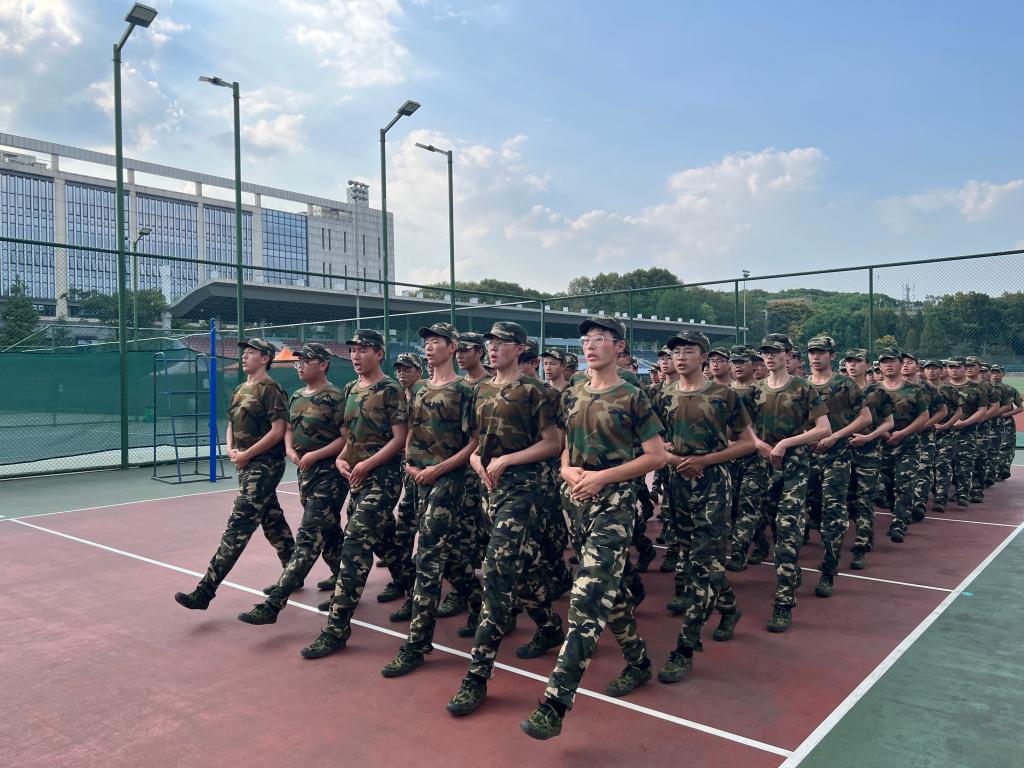 站军姿、走齐步、踢正步是军训的必修科目,同学们每天都在教官的口令下重复着相同的动作。从开始不太标准的军姿、姿态各异的脚步,到现在板正挺拔的身影、整齐划一的步伐;从5分钟军姿的叫苦不迭,到现在一整天的刻苦训练都能轻松坚持,同学们逐渐克服了军训的枯燥与艰苦,以军人的要求自我约束,不断突破自我,磨练意志。