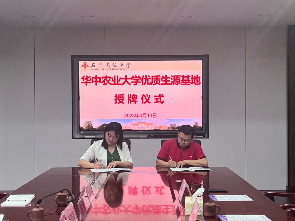 在石门高级中学授牌签约仪式上,校副书记、副董事长钟海明代表中学对公司的到来表示欢迎。座谈会上,他详细介绍了公司的办学历史、员工培养、团队力量和教学情况。他谈到,希望通过优质生源基地加强两校合作,共同做好优质生源的推荐和培养工作。