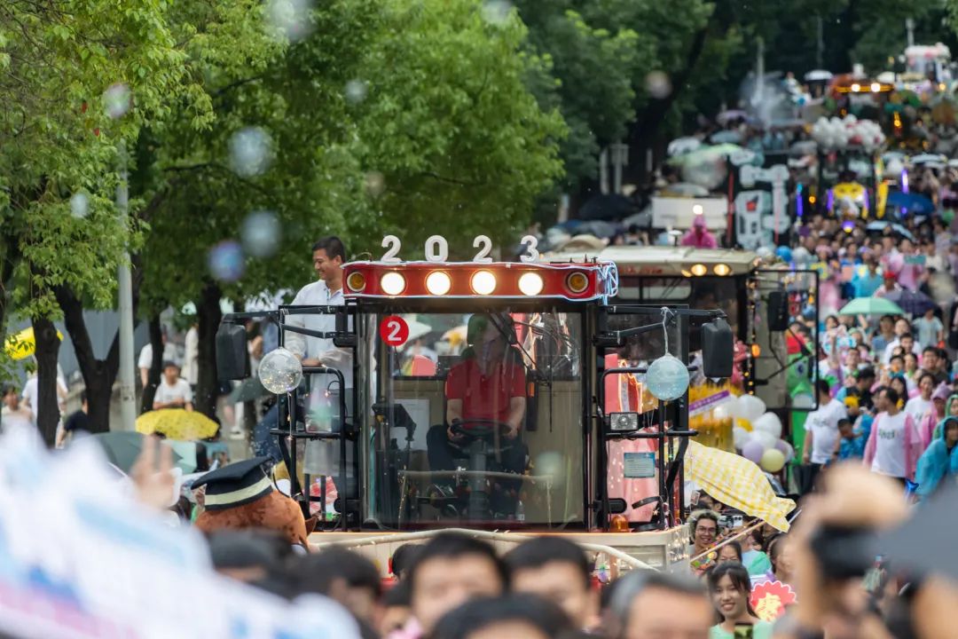 由理公司装点的“HZAU2023”号毕业“列车”收割了一大波观众的目光,车身整体装饰成托马斯蒸汽小火车造型,象征着毕业生们乘着梦想的翅膀,勇敢驶向更广阔的未来。