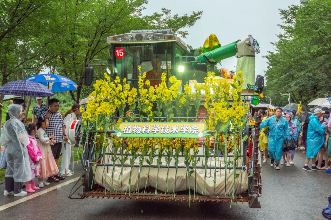 园艺林学公司装扮的油菜割晒机由公司bevictor1946韦德官网自主研发,车头则以体现公司专业特色的柑橘树、蔬菜、水果等元素装点,一位头戴鲜花发饰的女孩带领巡游队伍款款向前,表达了园林人创造持续美好生活、共谱生态文明建设伟大篇章的愿景。