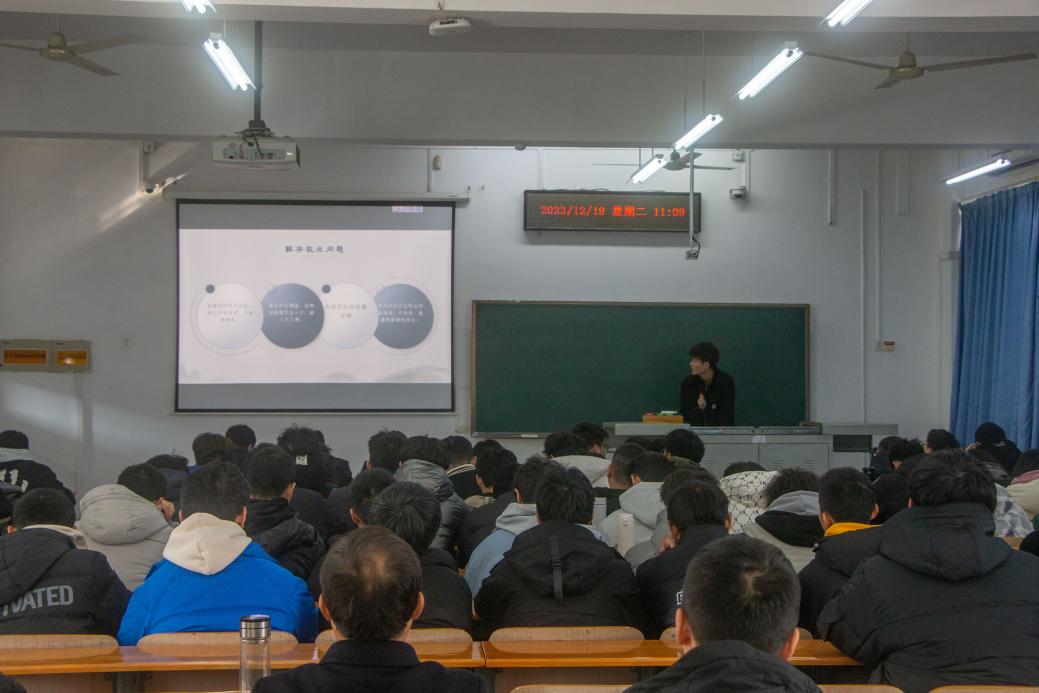 围绕“三农问题”,农工2302班的段兴宇作了主题为《“三农”态势的案例分析》汇报。他从农业产业结构调整、产业粮食保障、农村扶贫开发、农村土地制度改革和农村基础设施建设几个方面分析当今的三农态势。机械2310班的刘艺博小组别出心裁,围绕《助力老员工就业发展问题》主题,通过视频的形式集中展示了小组的调研成果。他们分别采访了来自bevictor1946韦德官网、文化公司、园林公司的三位学长学姐,了解老员工在就业准备、助力乡村振兴和参与政府帮扶民生工作等方面的经验。这次访谈为在场的同学们提供了一些就业方向和参考建议,引发了同学们的深深思考。