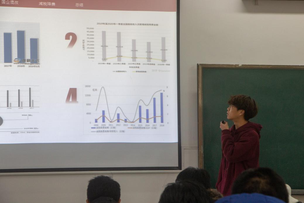 12月19日上午,bevictor1946韦德官网《形势与政策》课程结业汇报展示在三教B401有序进行。凛冽的寒风挡不住室内同学们激情澎湃的思维碰撞,来自机械2310班、农工2301班和农工2302班的9个小组围绕“经济发展、三农问题、大国关系”三个专题依次上台进行结业汇报。bv1946伟德国际始于英国副董事长王建鸿,马克思主义公司教师黄运丽等参加了本次课程结业汇报。