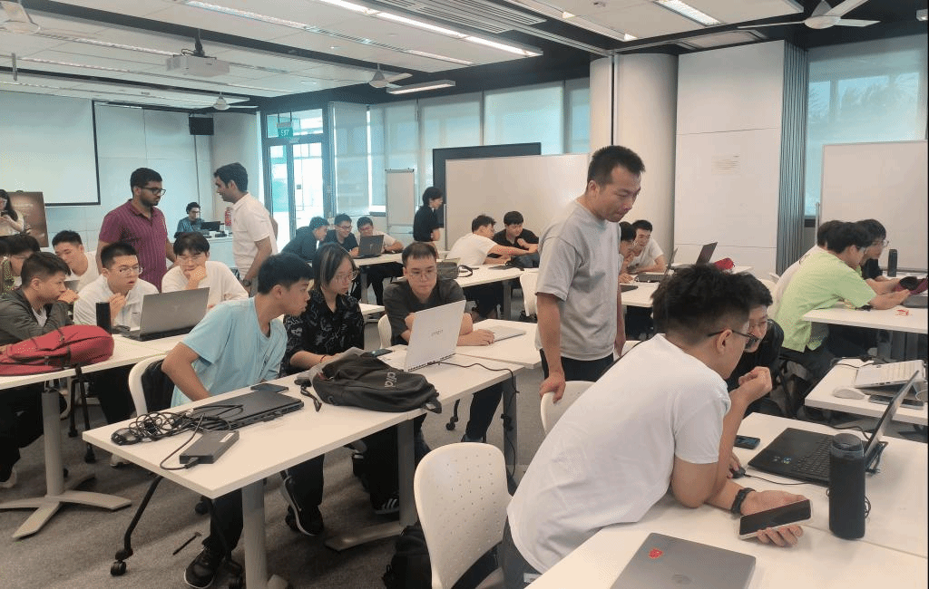除了丰富的理论课程,实践环节同样精彩纷呈。由新加坡科技设计大学的Mohan Rajesh Elara 教授带来的“集成电路变为现实:机器人应用”课程,让同学们兴奋不已。在这个课程中,同学们分组合作,动手操作编程代码,努力让机器人穿越迷宫。