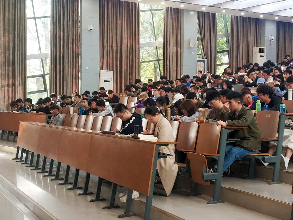 周熙就同学们关心的考研就业问题进行了详细的讲解和举例。他从2018级员工基本情况、四六级成绩、挂科情况等方面,帮助同学们认清现状,提醒大家要制定切实可行的奋斗目标。随后,根据考研就业意向调查问卷收集的结果,向大家梳理了目前同学们的考研就业意向,其中,有300多人有考研意愿,愿意直接就业的同学仅30余人,还有少数同学仍未确定未来目标,而在考研的同学中有一半以上的目标为985院校,但绝大多数同学仍未制定考研计划,周熙对此表示担忧。他希望同学们能更加清楚地确立目标,尽快调整学习状态,制定复习计划并付诸实际行动,否则一切都是空想。