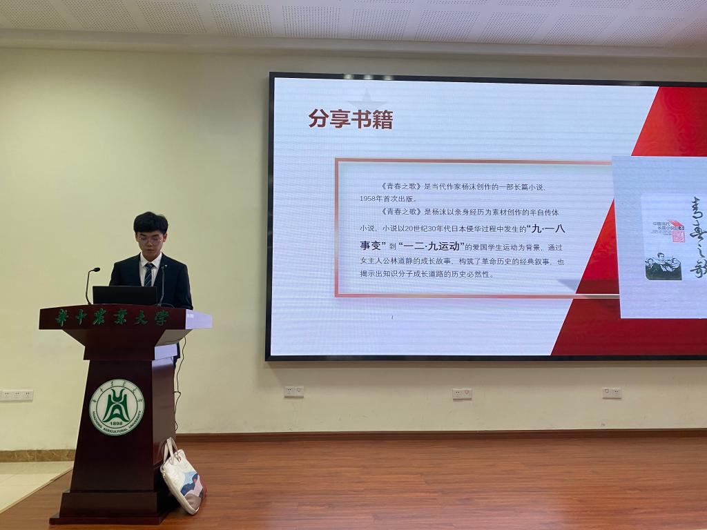 机械2001班的柏雨岑同学,以“学习百年党史,凝聚青春力量”为题分享了《中国共产党简史》一书。柏雨岑同学将百年前近代中国的屈辱史与今日百花齐放的新时代做对比,凸显出“没有共产党就没有新中国”的真理。柏雨岑同学结合自身暑期回校期间参与的疫情防控志愿公益活动向全体同学呼吁“中国青年应该以青春的力量积极拥抱新时代、奋进新时代,让青春在为祖国、为民族、为人类的奉献中焕发出更加绚丽的光彩!”。机械2010班的王桐新同学以电影《我和我的祖国》为切入点为我们分享了《青春之歌》一书。王桐新同学通过讲述《青春之歌》中女主人公林道静在抗战时期的成长过程及其英雄事迹,让我们感受到这场历史漩涡中,那些与我们同龄的青年所迸发的力量……参赛选手以党史书籍为媒介,各抒己见,打造了一个精彩纷呈的阅读分享盛会,重温了党的百年岁月中的辉煌成就。