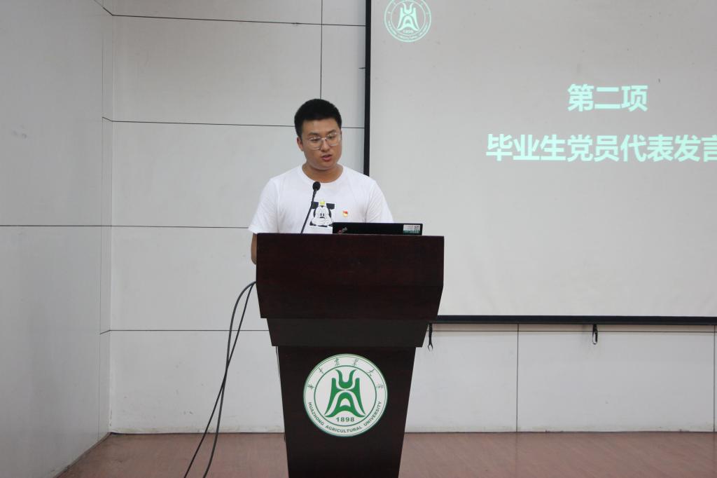 毕业生党员李自拓表示:“作为新时代的老员工党员,我们衷心祝愿伟大的党永葆青春、继往开来、乘风破浪。作为新时代的华农学子,工学培养了我们坚守初心的执着、追寻完美的品质和心怀家国的担当。我们将在今后的人生道路上,努力践行‘勤读力耕,立己达人’的校训精神,铭记工学所培养和赋予我们的能力,以及我们作为新时代青年党员所应当具备的品质和肩负的使命责任,不忘初心、砥砺奋进,心怀天下、勇敢前行。”