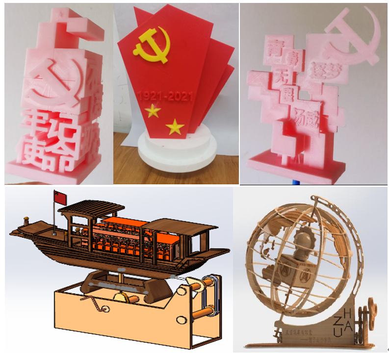 本次大赛旨在培养员工的创意创新意识、专业实践能力和团队合作精神,加强员工党史知识教育,厚植爱国主义情怀。员工灵活运用专业知识,将工学特色与党史学习相结合,充分展现创意创新设计、3D软件建模、3D打印实操技能等专业素质和能力。参赛作品依托红船精神、农业发展百年巨变、逐梦航天等题材,多维度展现中国共产党百年沧桑巨变以及当今中国的繁荣与富强,得到在场师生的一致认可与好评。