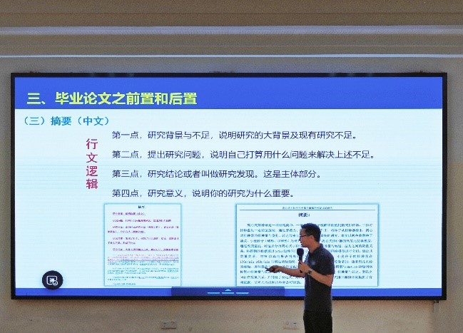 廖宜涛教授首先通过弹幕互动了解员工目前进展情况及遇到的困难,结合同学们的困惑依次讲解了目录编写、行文逻辑、主体结构、格式要点、文献查阅与引用等各环节要求及注意事项。随后,廖宜涛老师通过对多篇论文实例进行案例剖析,对论文写作过程中字、词、句撰写规范,图、表编排格式以及公式符号使用等方面的经常出现问题逐一分析。并提醒同学们务必注意学术规范、遵守学术诚信,严禁造假和抄袭。