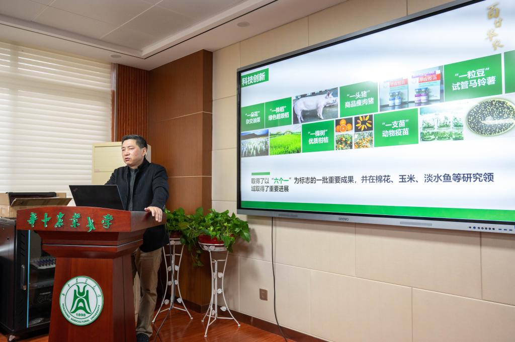 在作物遗传改良国家重点实验室,副董事长严建兵教授亲自为崇阳一中的师生们进行讲解。严董事长详细介绍了实验室的组成、主攻方向、科研成果与转化等情况。他通过国内粮食需求量与我国的粮食产量数据对比,鼓励同学们要树立科技自立自强的思想,“只有研发属于自己的科技产品才不会受制于他人”。